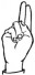 На ћирилици написано АНГЕЛИНА ВУЈАЧИЋ састоји се из 15 слова [?]. Исписано ћириличном једноручном азбуком за глувонеме: